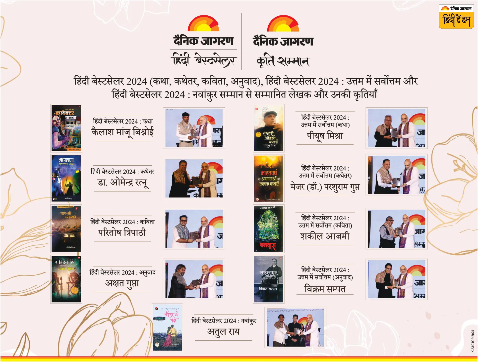 इस सम्मान के अंतर्गत उन लेखकों को सम्मानित किया जाएगा जिनकी कृति दैनिक जागरण द्वारा पूरे वर्ष की प्रत्येक तिमाही में प्रकाशित होने वाली बेस्टसेलर सूची में सर्वश्रेष्ठ रही है। इस श्रेणी में कविता, अनुवाद, कथेतर और कथा विधा में सर्वश्रेष्ठ रही किताबों के लेखकों को सम्मानित किया जाएगा। इस सम्मान की पुरस्कार राशि ₹ 50000 है।